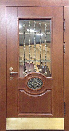 Поговорим об отделке. Вариантов декора дверей много. В большинстве случаев, для отделки элитных дверей используется массив натурального дерева или натуральный шпон с фрезеровкой. Цвет двери так же делается по желанию заказчика. Очень красиво и представительно выглядят двери с ковкой и стеклом.